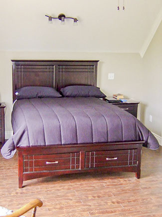The Trestle Cottage Bed and Breakfast is newly constructed—finished in June 2011. Generous sized windows flood the interior with light. The loft sleeps 2 people (Queen Bed, partial ensuite). Outside the bedroom loft is a seating area that provides a view of Mobile River. Here guests can watch TV, use the Internet or just relax with a good book.